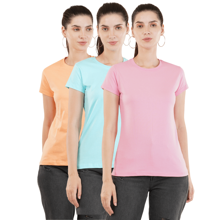 Our Women's Cotton Regular Fit T-Shirts are made from 100% pure cotton, ensuring breathability, softness, and durability. The natural fibers allow for comfortable all-day wear, making it suitable for various occasions. These T-shirt are tailored with a regular fit, providing a flattering silhouette that complements all body types.